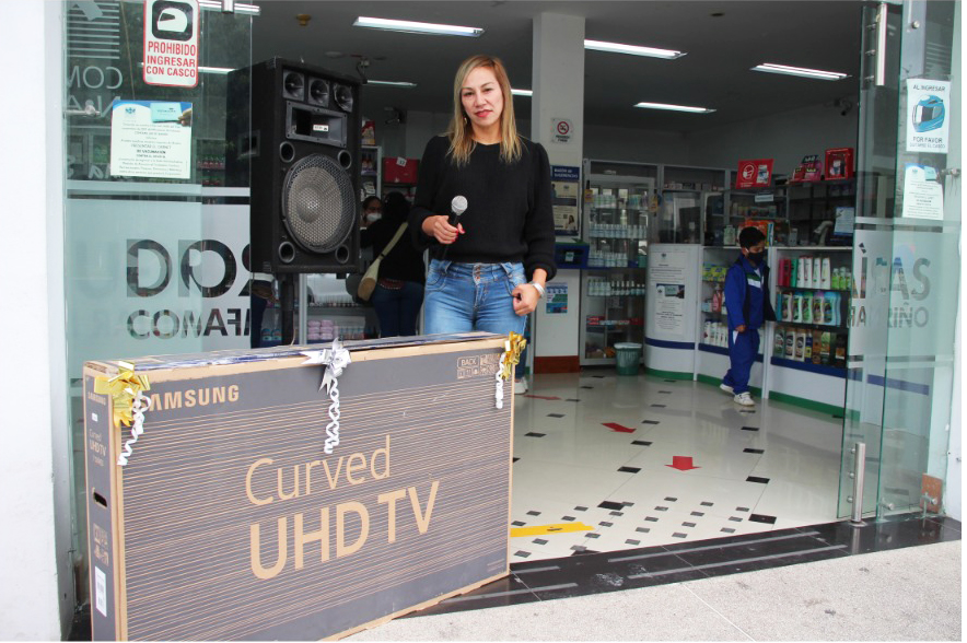 En horas de la tarde, se hizo la rifa de un televisor de 49”, el requisito para participar era realizar compras superiores a $20.000. Los asistentes con gran expectativa esperaban los resultados, se dieron premios a tres concursantes y el primero fue   el feliz ganador del televisor.