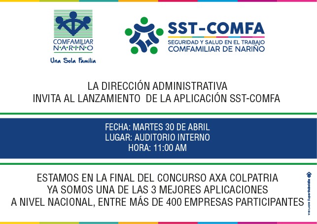 La Dirección Administrativa invita al Lanzamiento de la aplicación SST – COMFA, finalista en el concurso AXA Colpatria entre más de 400 empresas participantes.