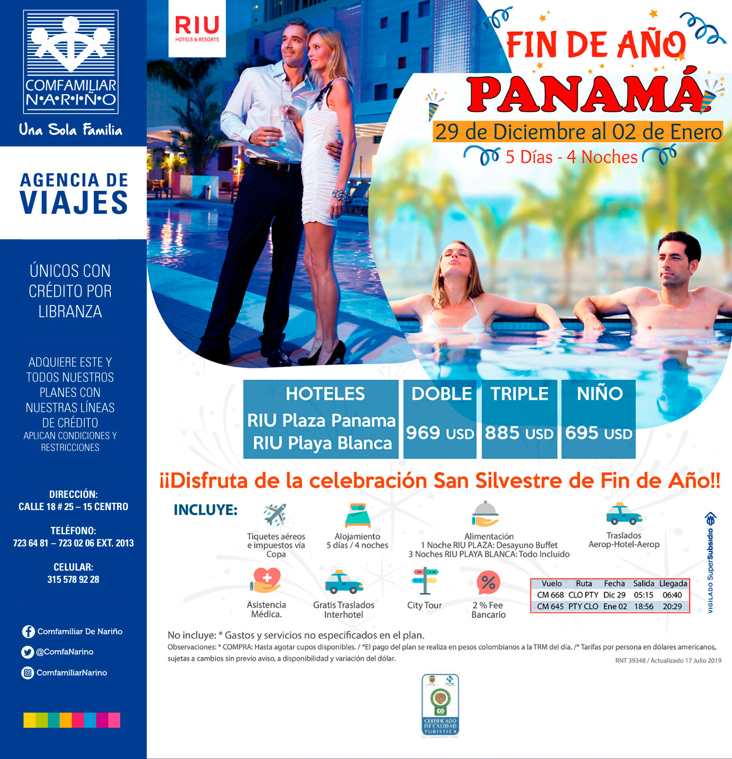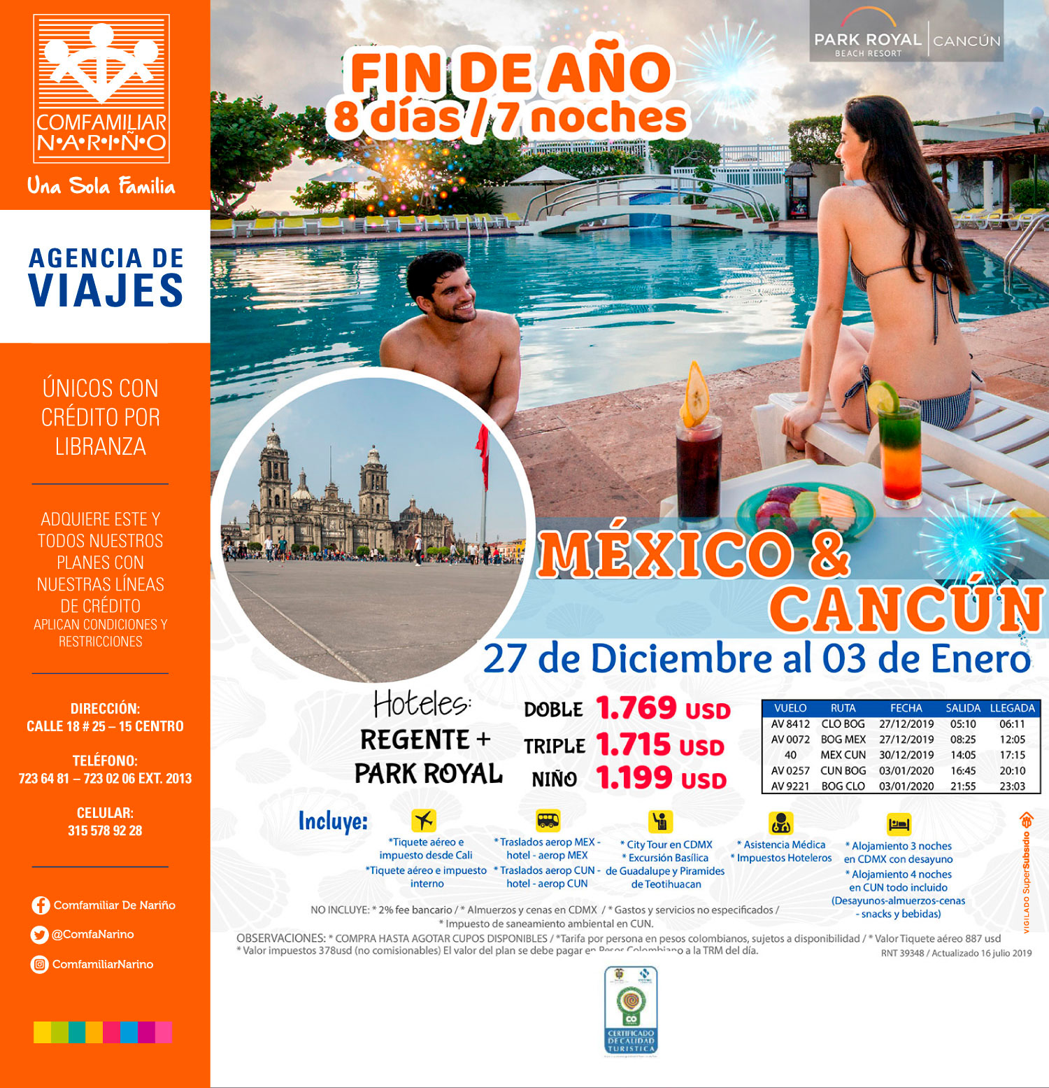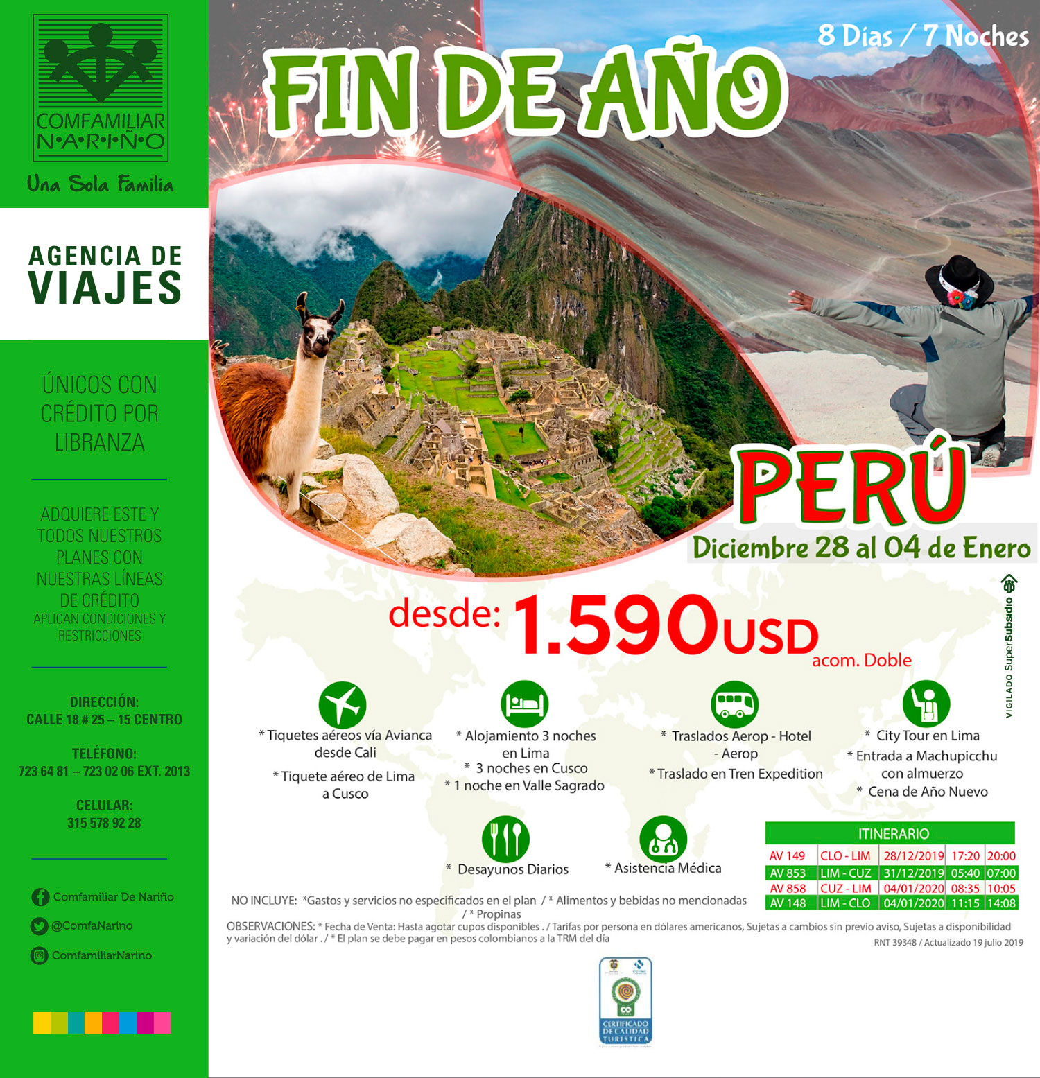 Conoce la oferta en planes para fin de año que ofrece la Agencia de Viajes COmfamiliar de Nariño. Llama a y reserva.